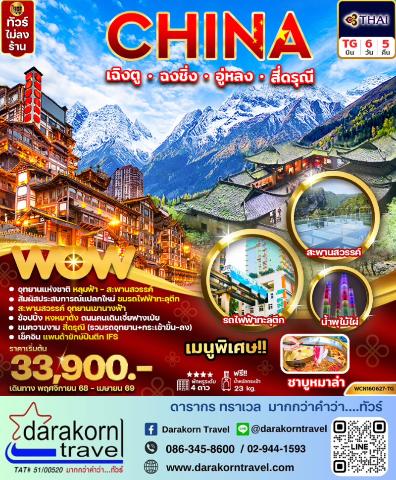 | DAY1 | กรุงเทพ(สนามบินสุวรรณภูมิ) – เมืองเฉิงตู ประเทศจีน – ฉงชิง |