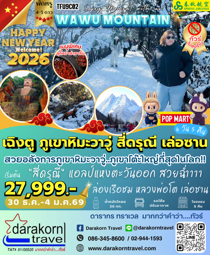 DAY5 | ล่องเรือชมหลวงพ่อโตเล่อซาน – เมืองเฉิงตู – ถนนคนเดินโบราณซอยแคบซอยกว้างหรือควานไจ่เซี่ยงจื่อ –แสงสีสี่มิติตึกแฝดเฉิงตูChengdu Twins Tower |