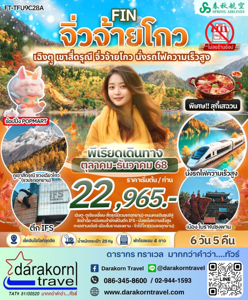 DAY5 | จิ่วไจ้โกว – นั่งรถไฟความเร็วสูงไปเฉิงตู – วัดต้าฉือ – ถนนคนเดินชุนชีลู่ – หมีแพนด้ายักษ์ ปีนตึก IFS – ชมแสงสี The Power of Life |