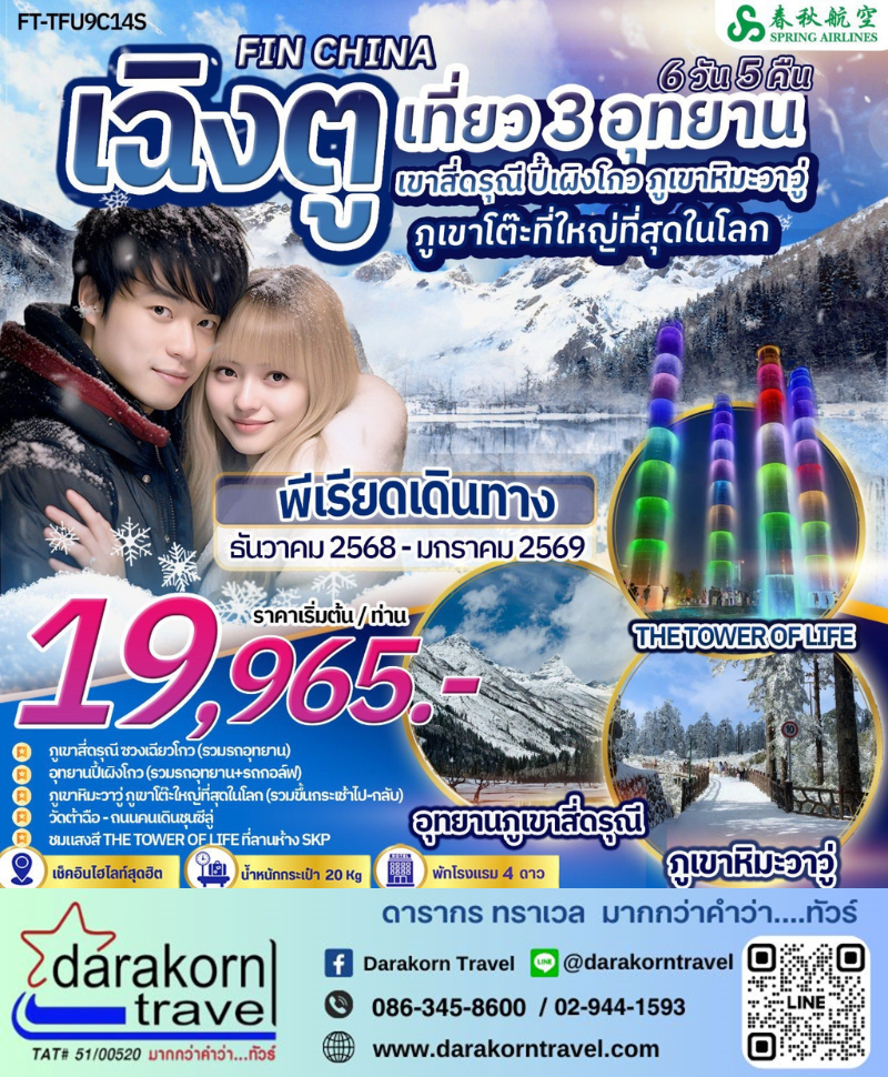 DAY1 | สนามบินสุวรรณภูมิ – สนามบินนานาชาติเฉิงตู เทียนฟู่ – ตูเจียงเอี้ยน |