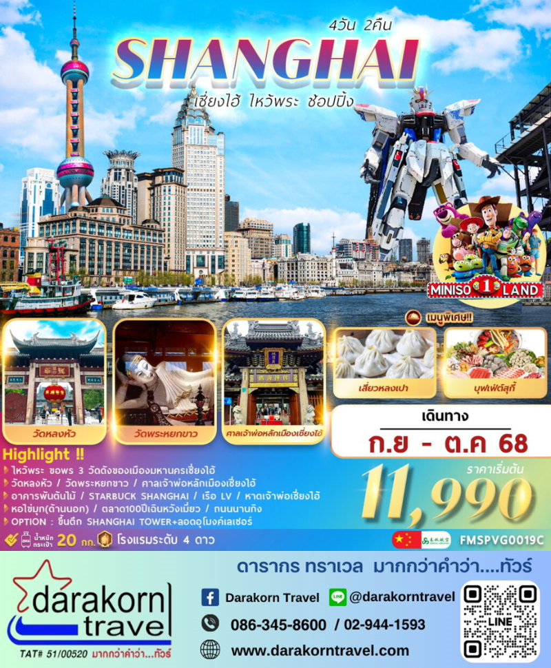 ทัวร์จีน - เซี่ยงไฮ้ . . . ไหว้พระ ช้อปปิ้ง 4วัน2คืน(9C)เดือนกันยายน - ตุลาคม 2568