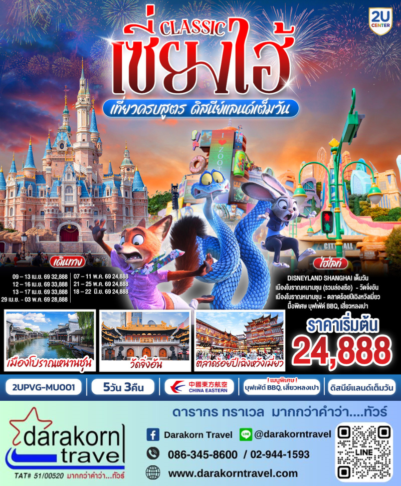 | DAY5 | วัดจิ่งอัน – EKA TIANWU – ถนนหวยไห่มิดเดิ้ลโร้ด (Huahai Middle Road) – Florentia Village Outlet – สนามบินซางไฮ้ผู่ตง – กรุงเทพฯ(สนามบินสุวรรณภูมิ) (MU547 : 21.00 – 00.40+1) |
