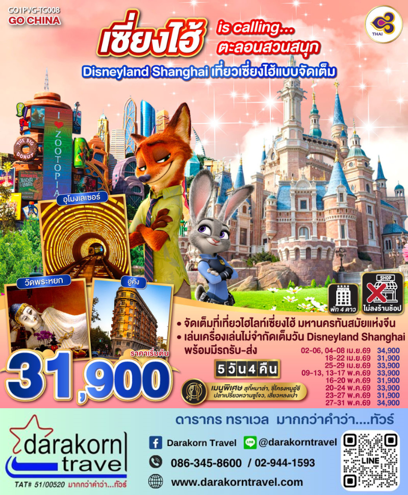 | DAY3 | สวนสนุกเซี่ยงไฮ้ดิสนีย์แลนด์ (เต็มวัน) รวมบัตรค่าเข้า+รถรับส่ง |