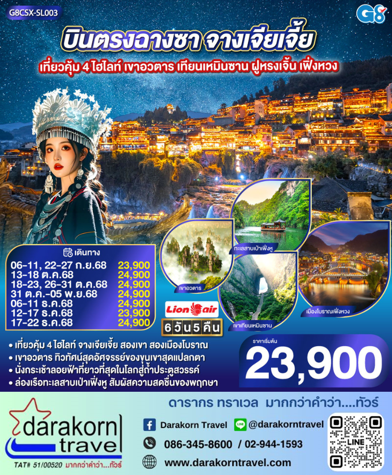 DAY3 | จางเจียเจี้ย – เขาเทียนเหมินซาน (รวมกระเช้าขึ้นลง) – ระเบียงแก้ว – บันไดเลื่อน 999 ขั้น – ถ้ำประตูสวรรค์ – เมืองโบราณฝูหรงเจิ้น – ชมแสงสียามค่ำคืน OPTIONAL SHOW : โชว์จิ้งจอกขาว ท่านละ 400 หยวน |