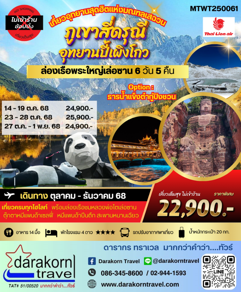 DAY5 | เมืองตูเจียงเยี่ยน–เมืองเล่อซาน- ตุ๊กตาหมีแพนด้าเซลฟี่ – ล่องเรือชมหลวงพ่อโต–วัดเป้ากั๋ว |