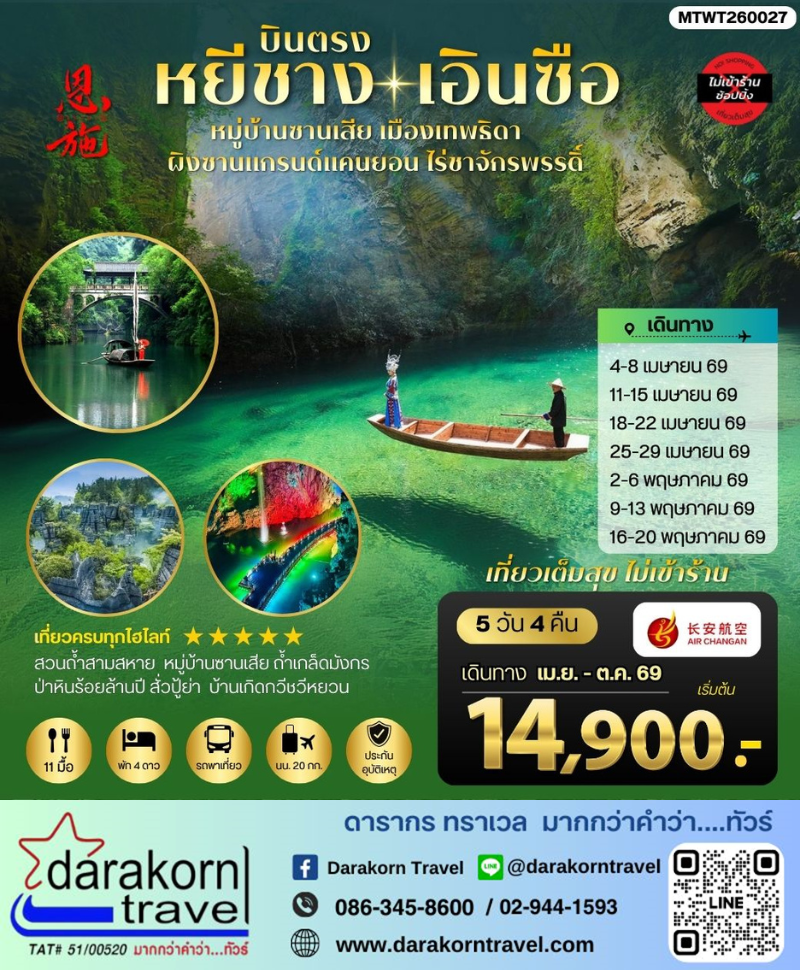 | DAY5 | เมืองหยีชัง –บ้านเกิดกวีชวีหยวน-สวนถ้ำสามสหาย- เดินทางกลับกรุงเทพ |