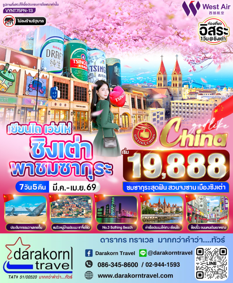 | DAY4 | เดินทางสู ่เมืองชิงเต่า – จัตุรัส 54 (May Fourth Square) – พิพิธภัณฑ์โรงเบียร์ชิงเต่า (ชิมเบียร์ชิงเต่า ท่านละ 1 แก้ว) – หมู ่บ้านชาวประมงซาจื ่อโข่ว – หาด No.3 Bathing Beach – ถนนคนเดินไท่ตง |