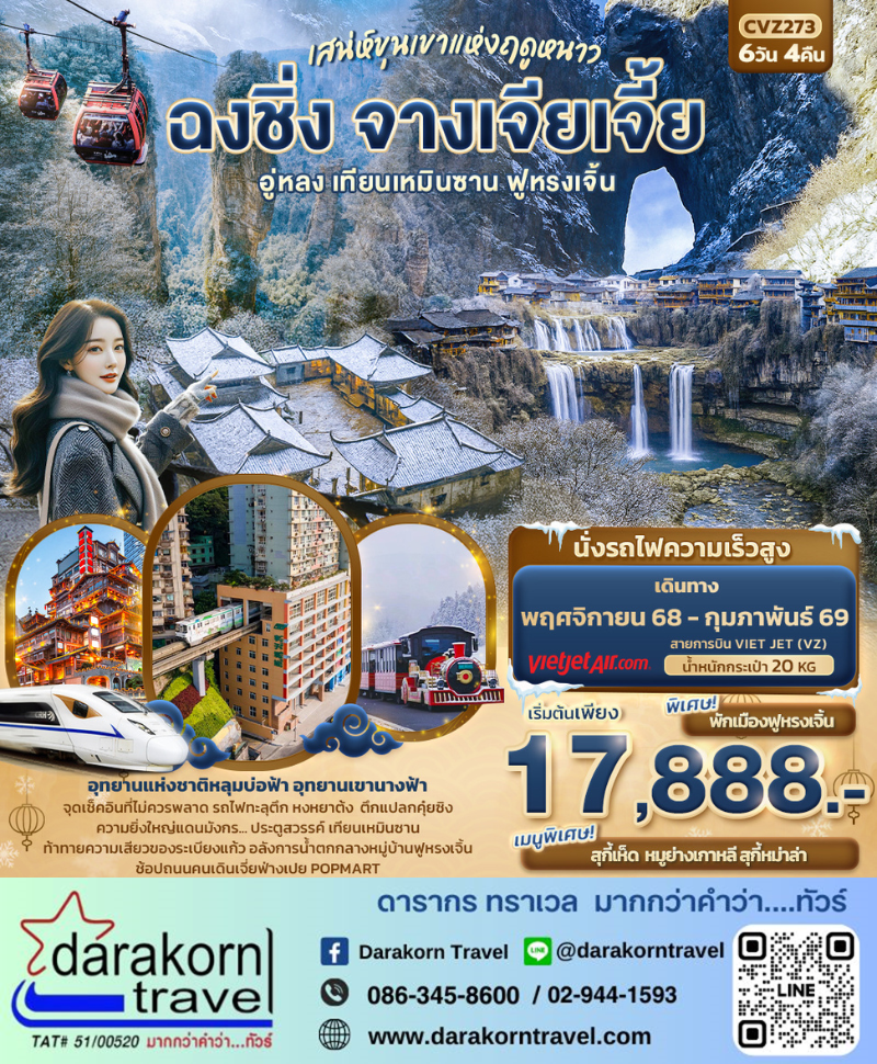 DAY2 | ท่าอากาศยานนานาชาติฉงชิ่งเจียงเป่ย์ ฉงชิ่ง – เข้าสู่ที่พัก – อู่หลง – เขานางฟ้า(รวมรถราง) – หลุมบ่อฟ้าและสะพานสวรรค์(ลิฟท์แก้วขาลง+รถประจำทางอุทยาน+รถกอล์ฟ) – ระเบียงแก้วกระจก – เมืองเฉียนเจียง – ไนท์บาซาร์ |