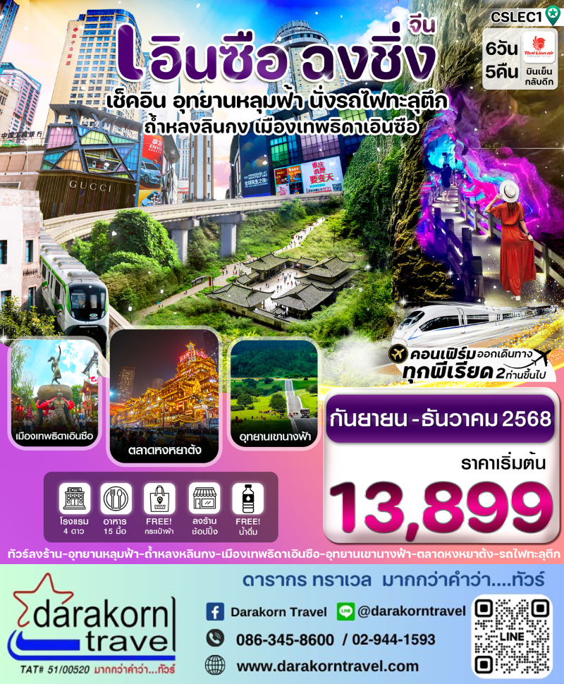 DAY6 | เมืองเอินซือ – ถ้ำหลงหลินกง – ช้อปปิ้งร้านของฝากท้องถิ่น – ชนเมืองชนเผ่าถู่เจียงเอินซือ – ศูนย์การค้าเหอหรุนซิตี้ HE RUN CHEN MALL – สนามบินเอินซือ – เดินทางกลับไทยเที่ยวบินSL8981(21.30) – เดินทางถึงสนามบินดอนเมือง |