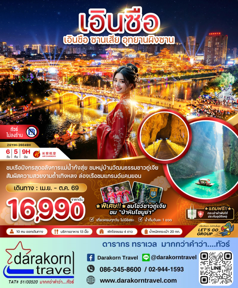| DAY4 | อุทยานเขาผิงซาน – ล่องเรือชมแกรนด์แคนยอน – ถนนคนเดินเมืองลูกสาวเอินซือ |