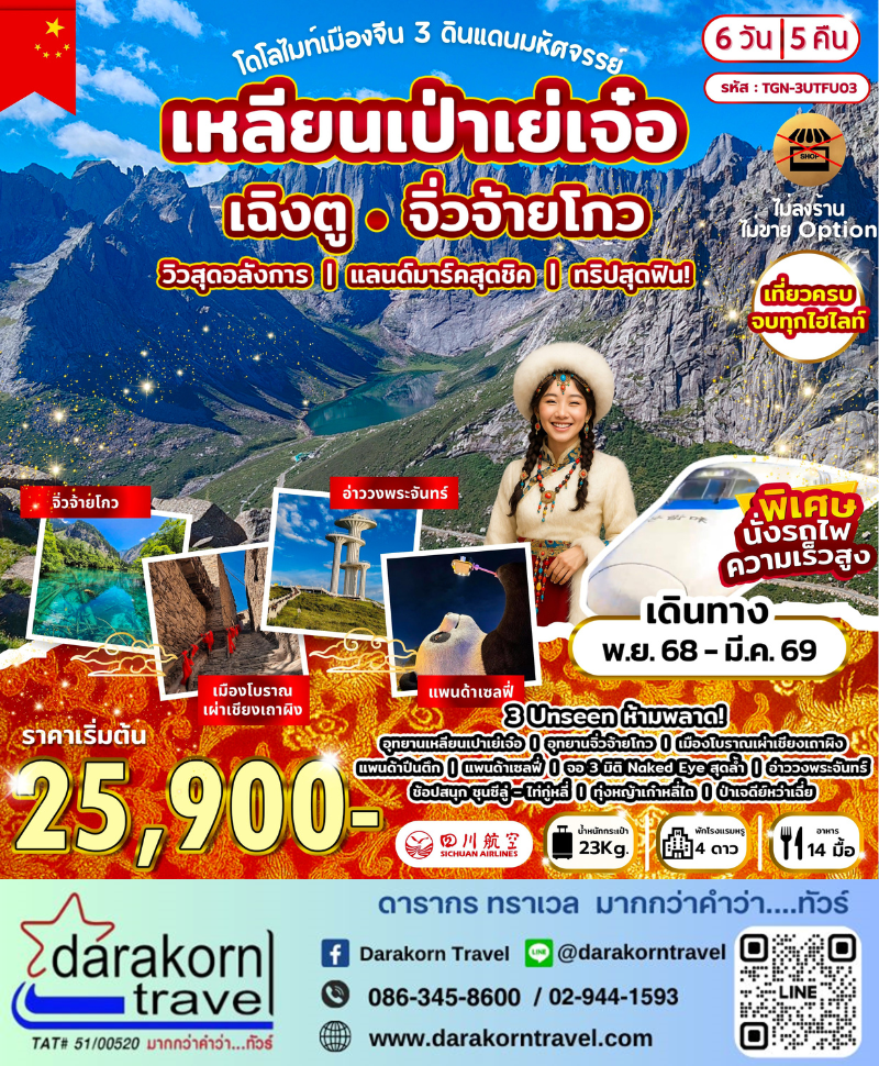 DAY3 | เมืองอาป้า • อุทยานเหลียนเป่าเย่เจ๋อ (รวมรถอุทยาน+รถกอล์ฟ) • เมืองหลี่เซียน |