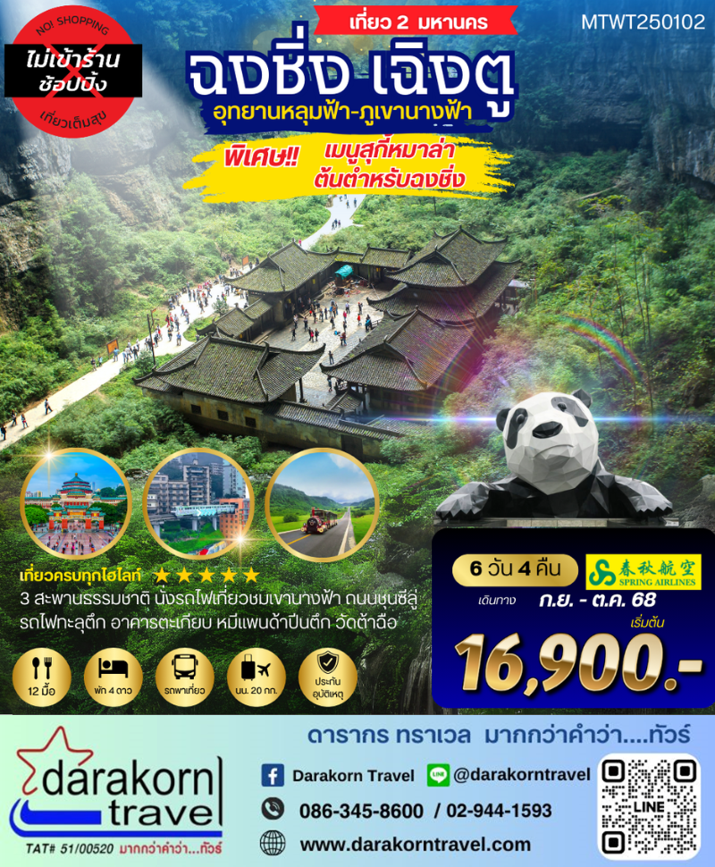 DAY2 | สนามบินสุวรรณภูมิ-นครเฉิงตู- นครฉงชิ่ง-เมืองอู่หลง |