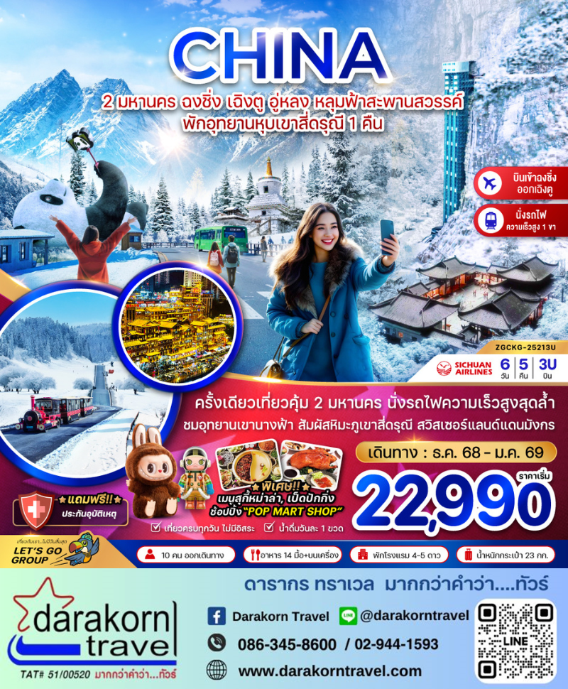 DAY5 | หุบเขาชวงเฉียวโกว (รวมรถอุทยาน) – เมืองเฉิงตู – ซอยกว้างซอยแคบ –POP MART |