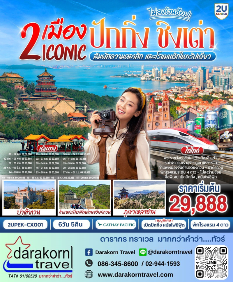ทัวร์จีน - 2 เมือง ICONIC ปักกิ่ง - ชิงเต่า(นั่งรถไฟความเร็วสูง) 6วัน5คืน(CX)เดือนเมษายน - ตุลาคม 2569