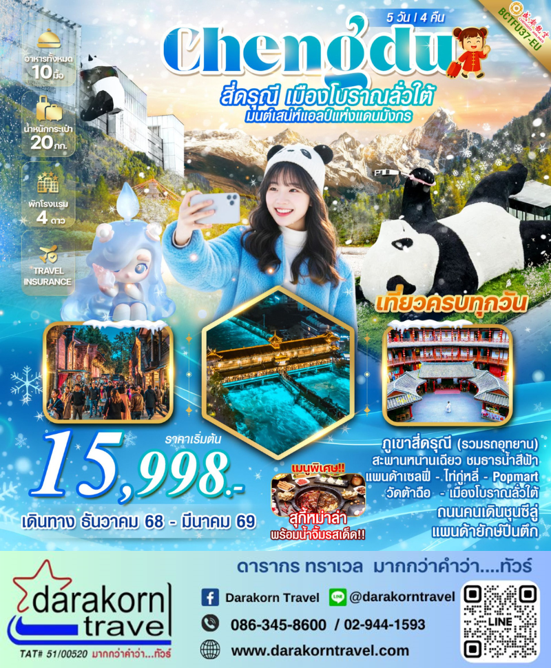 | DAY4 | เฉิงตู – ร้านยาถงเหยินถัง – พิพิธภัณฑ์ผ้าปักเสฉวน – วัดต้าฉือ – ถนนคนเดินไท่กู่หลี่ – ถนนคนเดินชุนซีลู่ – Popmart – แพนด้ายักษ์ปีนตึก |
