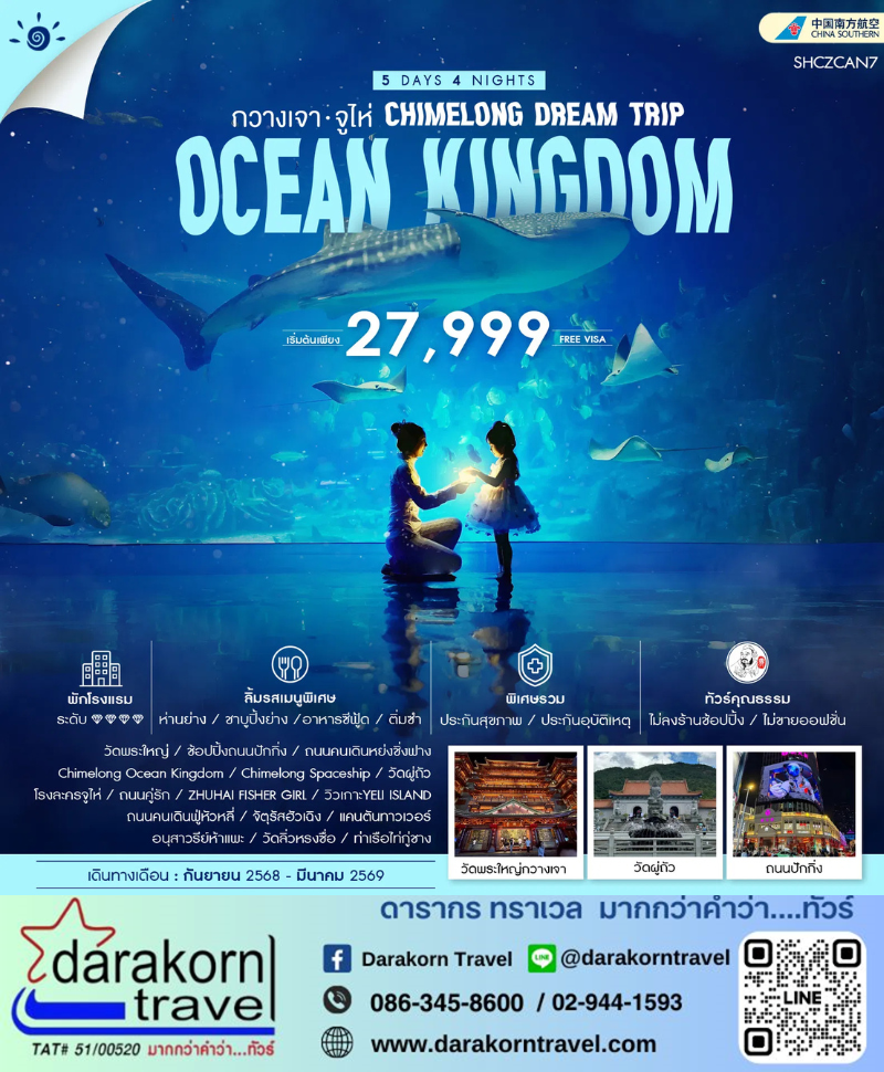 | DAY2 | Chimelong Ocean Kingdom (รวมค่าเข้าเต็มวัน) |