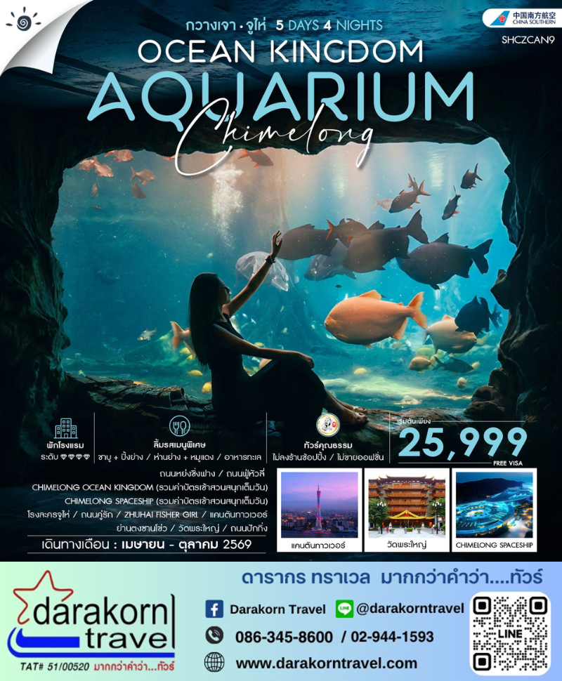 | DAY2 | CHIMELONG OCEAN KINGDOM (รวมค่าบัตรเข้าสวนสนุกเต็มวัน) |