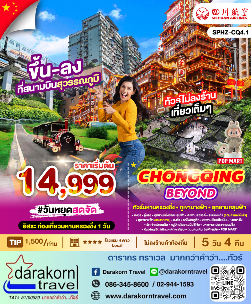 ทัวร์จีน – CHONGQING BEYOND 5วัน4คืน(3U)เดือนตุลาคม 2568