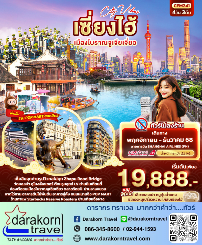 DAY4 | วัดหลงหัว – หอไข่มุก(ด้านนอก)– LaLaport Shopping Mall – Florentia Village Outlet – สนามบินนานาชาติซ่างไห่ผู่ตง (เซี่ยงไฮ้) – ท่าอากาศยานนานาชาติสุวรรณภูมิ |