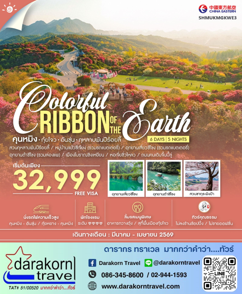| DAY6 | เมืองกุ้ยหยาง • นั่งรถไฟความเร็วสูง • คุนหมิง • ถนนคนเดินจิ้นปี้ลู่ • กรุงเทพฯ (สนามบินสุวรรณภูมิ) (MU9621: 20.40–22.15) |