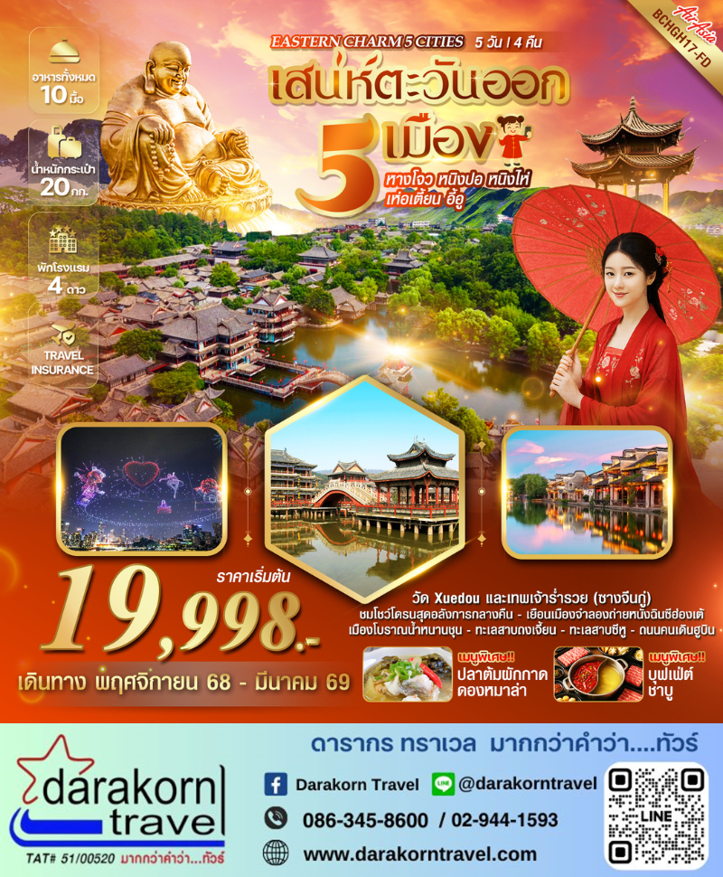 ทัวร์จีน - EASTERN CHARM 5 CITIES 5วัน4คืน(FD)เดือนพฤศจิกายน 2568 - มีนาคม 2569