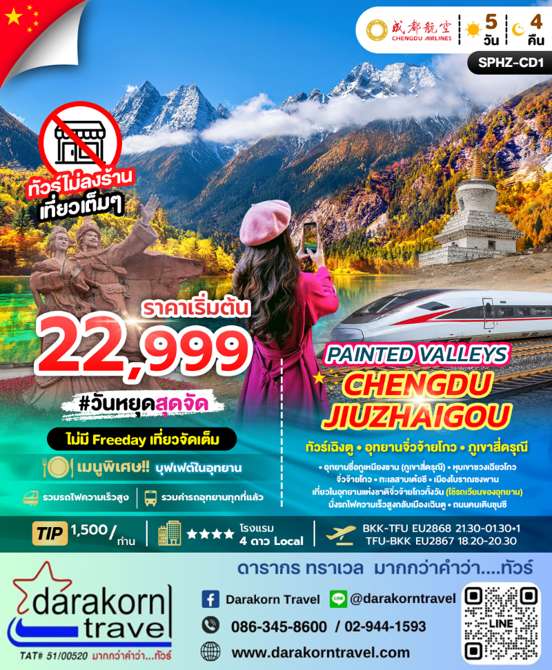 DAY5 | นั่งรถไฟความเร็วสูงกลับเมืองเฉินตู-ถนนคนเดินชุนซี-สนามบินนานาชาติเฉิงตูเทียนฟู่-กรุงเทพฯ(สนามบินสุวรรณภูมิ) |