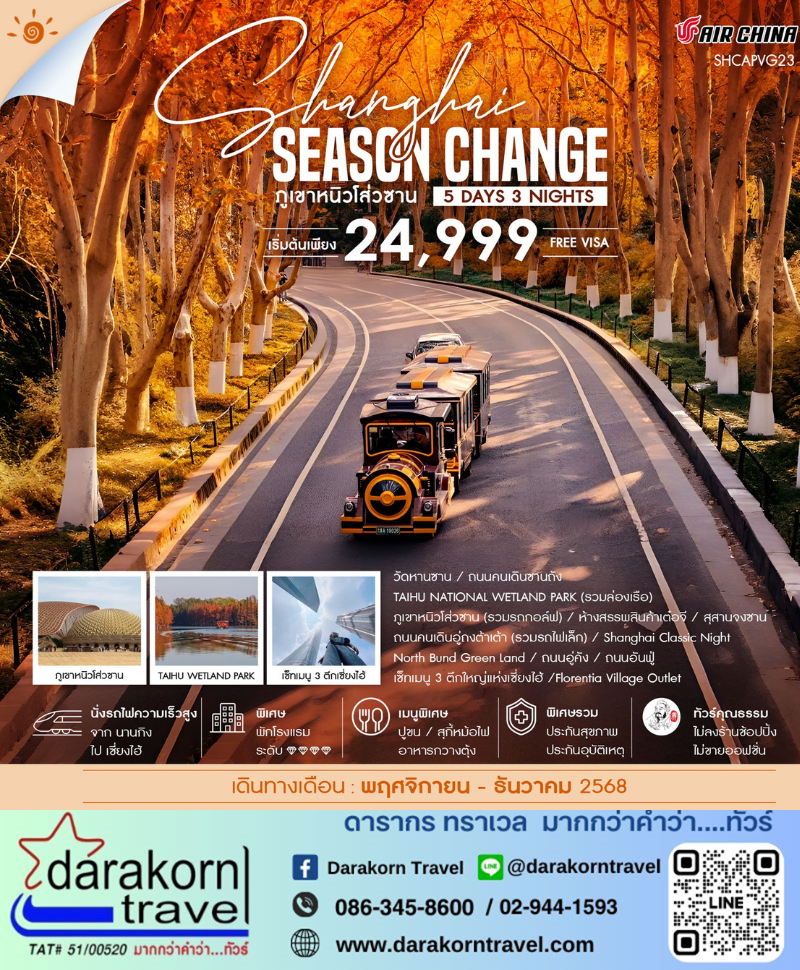 ทัวร์จีน - SEASON CHANGE ภูเขาหนิวโส่วซาน 5วัน3คืน(CA)เดือนพฤศจิกายน - ธันวาคม 2568