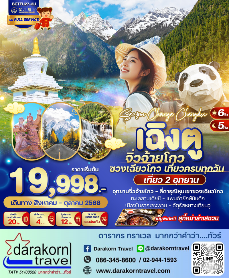 DAY1 | กรุงเทพฯ(สนามบินสุวรรณภูมิ) (3U3936 18.05-21.55) – เฉิงตู |