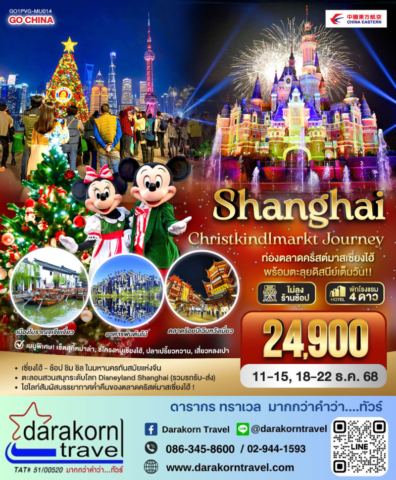 | DAY5 | วัดหลงหัว – EKA TIANWU – ถนนหวยไห่มิดเดิ้ลโร้ด (Huahai Middle Road) – Florentia Village Outlet – สนามบินซางไฮ้ผู่ตง – กรุงเทพฯ(สนามบินสุวรรณภูมิ) |