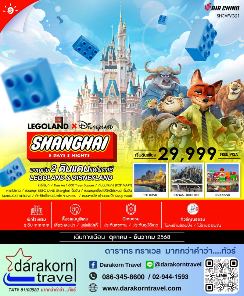 ทัวร์จีน - Shanghai Magical Duo 5วัน3คืน(CA)เดือนตุลาคม - ธันวาคม 2568