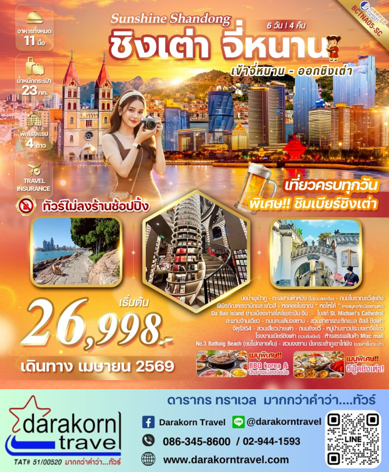 ทัวร์จีน - Sunshine Shandong จี่หนาน เมืองชิงเต่า 6วัน4คืน(SC)เดือนเมษายน 2569
