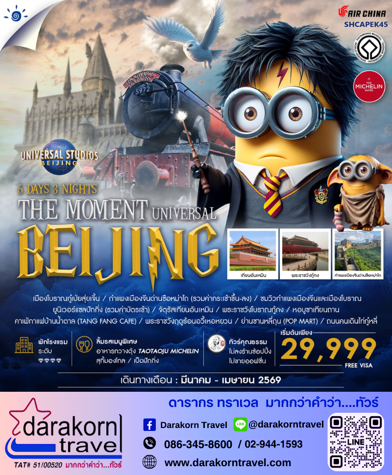 ทัวร์จีน - THE MOMENT UNIVERSAL BEIJING 5วัน3คืน(CA)เดือนมีนาคม - เมษายน 2569