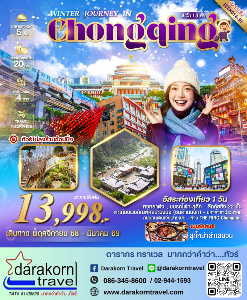 DAY4 | ฉงชิ่ง – ห้าง THE RING MALL – วัดเจ้าแม่กวนอิม – สนามบินฉงชิ่งเจียงเป่า– กรุงเทพฯ สุวรรณถูมิ3U3771 |