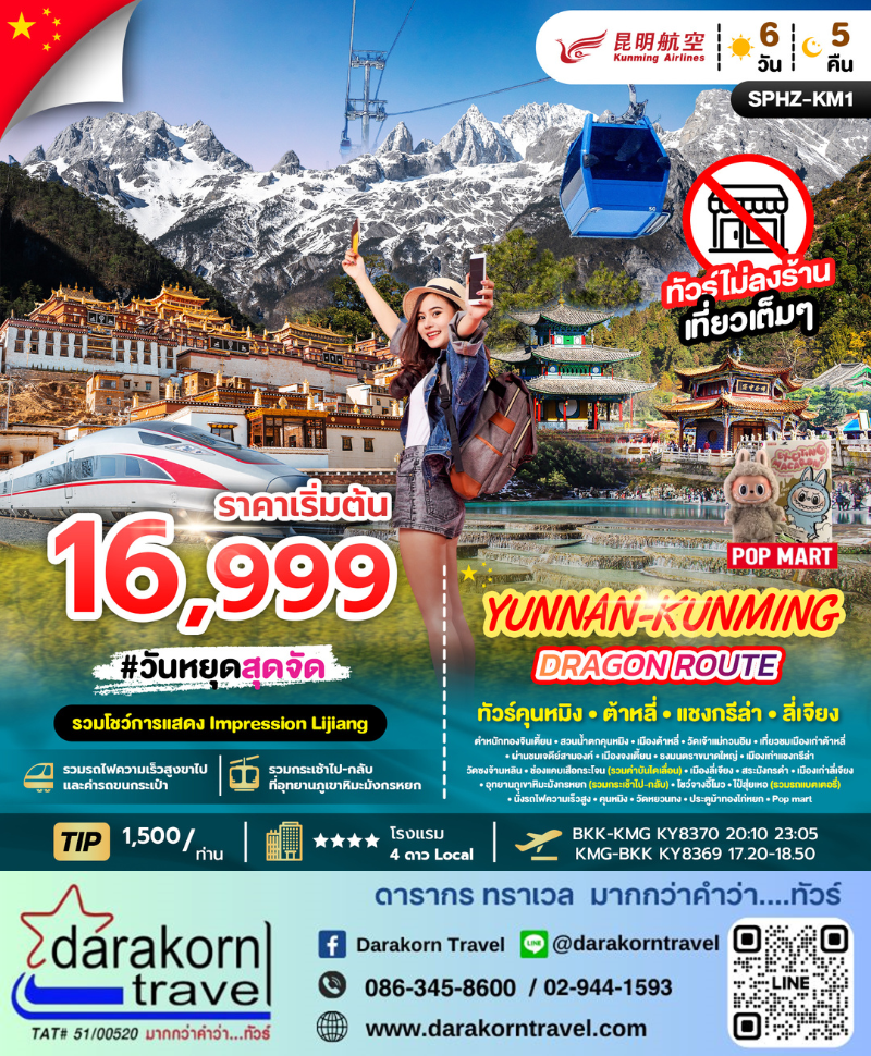 DAY6 | วัดหยวนทง-ประตูม้าทองไก่หยก-Pop mart – สนามบินนานาชาติคุนหมิงฉางสุ่ย- กรุงเทพฯ (สนามบินสุวรรณภูมิ) |