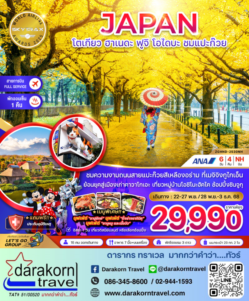 ทัวร์ญี่ปุ่น - โตเกียว ฮาเนดะ ฟูจิ โอไดบะ ชมแปะก๊วย 6วัน4คืน(NH)เดือนพฤศจิกายน 2568