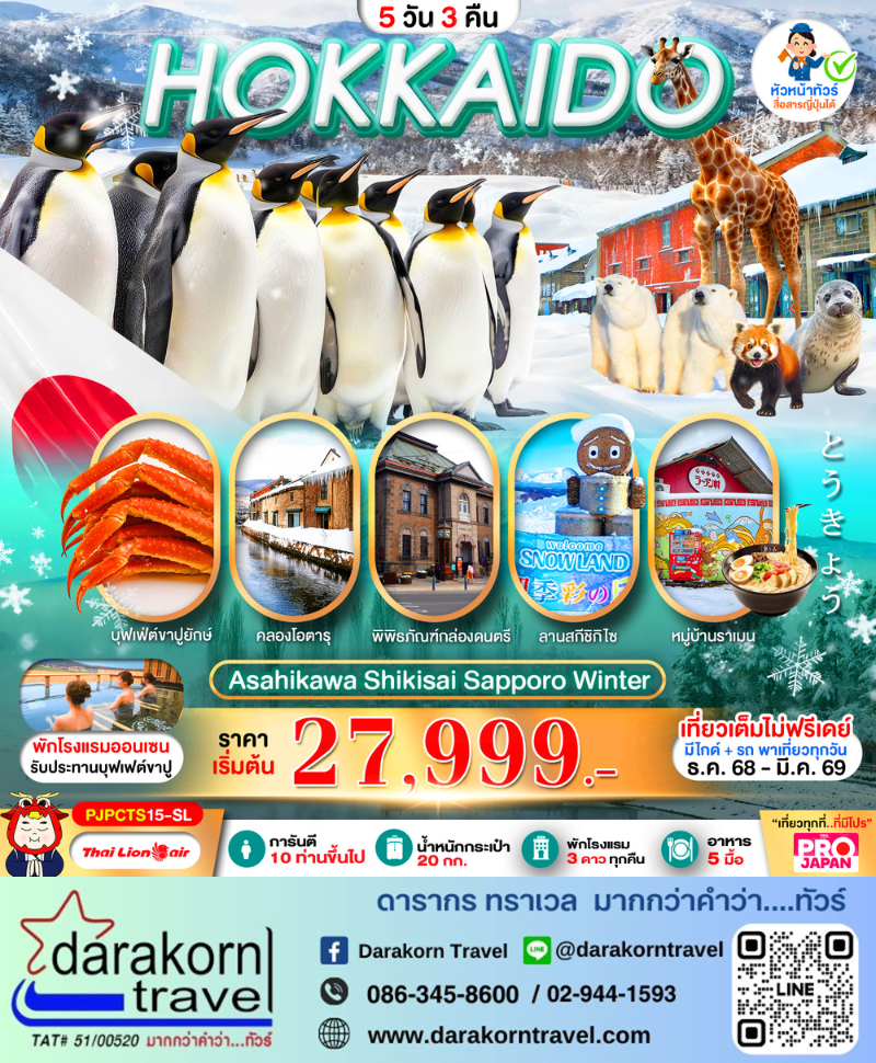 | DAY2 | สวนสัตว์อาซาฮิยามะ-หมู่บ้านราเมน-ลานสกีชิกิไซเมืองโอบิฮิโระ-อิสระช้อปป้งิท่ีเมืองโอบิฮิโระ |