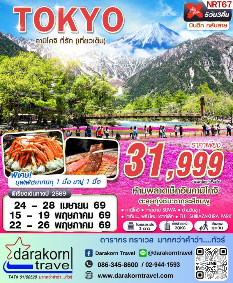 ทัวร์ญี่ปุ่น - คามิโคจิ ที่รัก 5วัน3คืน(XJ)เดือนเมษายน 2569