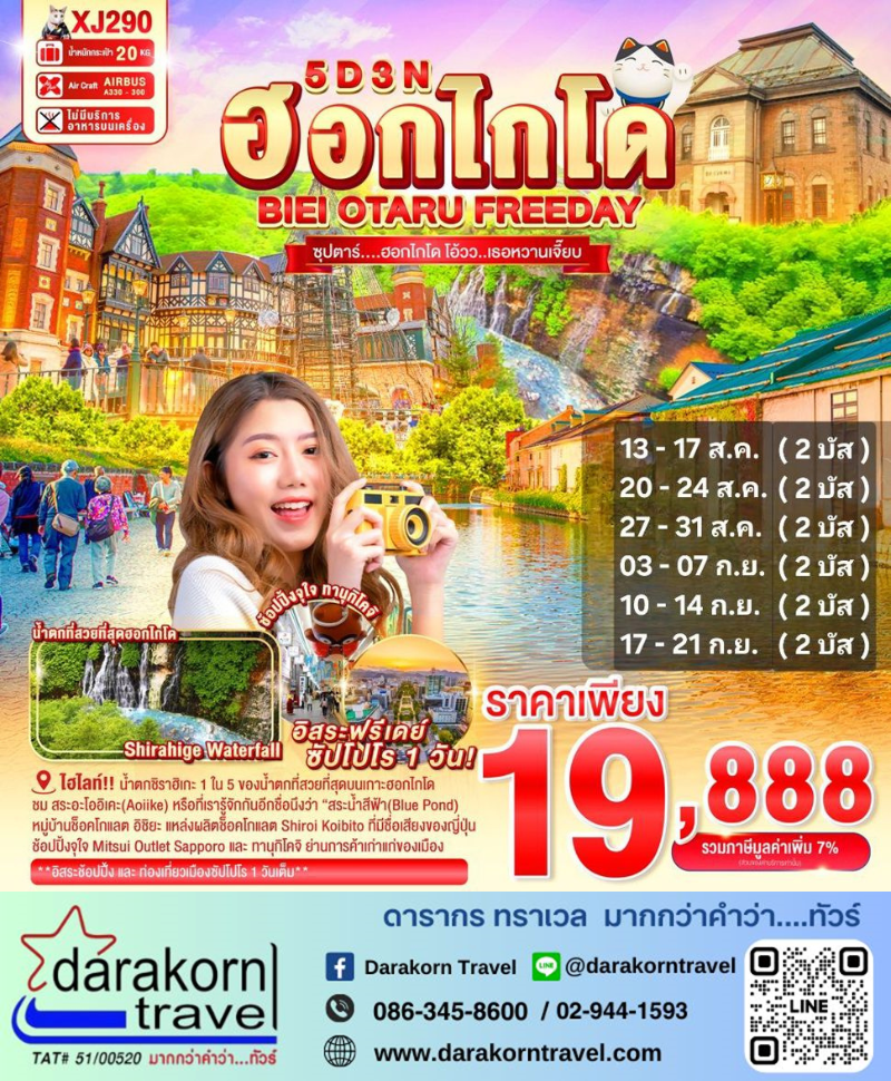DAY3 | ดิวตี้ฟรี – จังหวัดบิเอะ – น้ำตกชิราฮิเกะ – บ่อน้ำสีฟ้าแห่งเมืองบิเอะ – ซัปโปโร – มิตชุยเอาเล้ตท์ ปาร์ค ซัปโปโร คิตะฮิโระชิมะ |