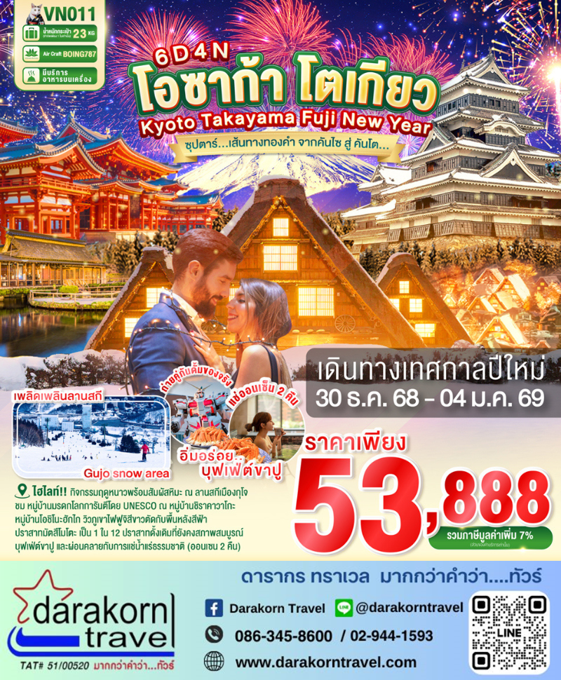 | DAY3 | ลานสกีเมืองกุโจ – หมู่บ้านชิราคาวาโกะ – ทาคายาม่า |