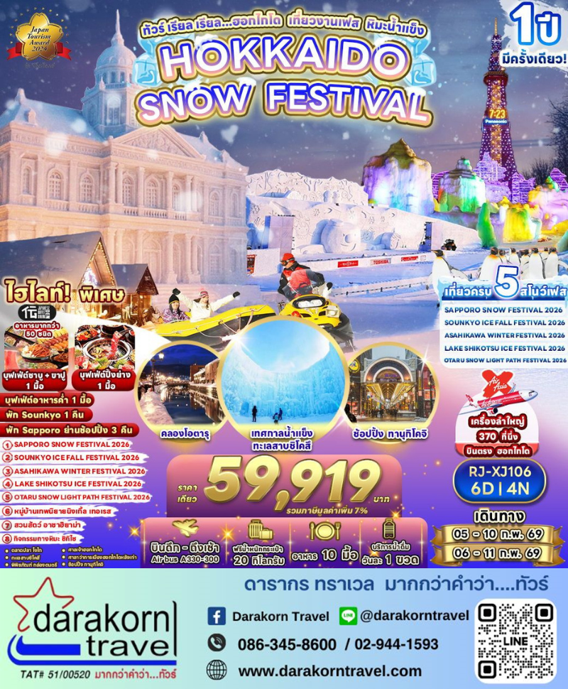 DAY3 | เมืองอาซาฮิคาว่า-ASAHIKAWA WINTER FESTIVAL 2026-สวนสัตว์อาซาฮิยาม่า-หมู่บ้านราเมนอาซาฮิคาว่า-เมืองบิเอะ-SHIKISAI SNOW LAND-เมืองซัปโปโร-อิสระชมงาน SAPPORO SNOW FESTIVAL 2026 |