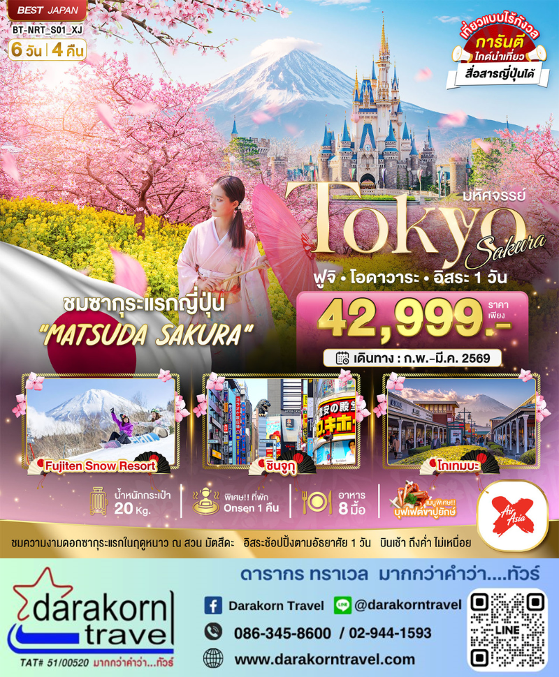 DAY3 | ช้อปปิ้งปลอดภาษี•ลานสกีฟูจิเท็น•เมืองโตเกียว •วัดอาซากุสะ •ถนนนากามิเสะ |
