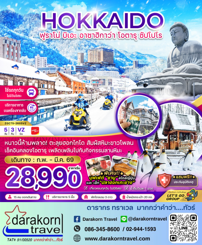 | DAY4 | ดิวตี้ฟรี – โอตารุ – คลองโอตารุ – พิพิธภัณฑ์กล่องดนตรี – ถนนซาไกมาชิ อุทยานโมอาย – พระใหญ่อะตามะ ไดบุตสึ – มิตซุย เอาท์เล็ต |