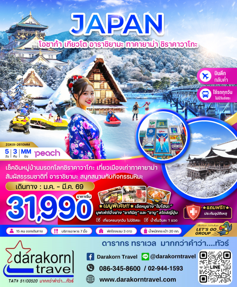 | DAY3 | ลานกิจกรรมหิมะ – ทาคายาม่า – ที่ทำการเก่าเมืองทาคายาม่า-เขตเมืองเก่าซันมาชิซึจิ – หมู่บ้านชิราคาวาโกะ |