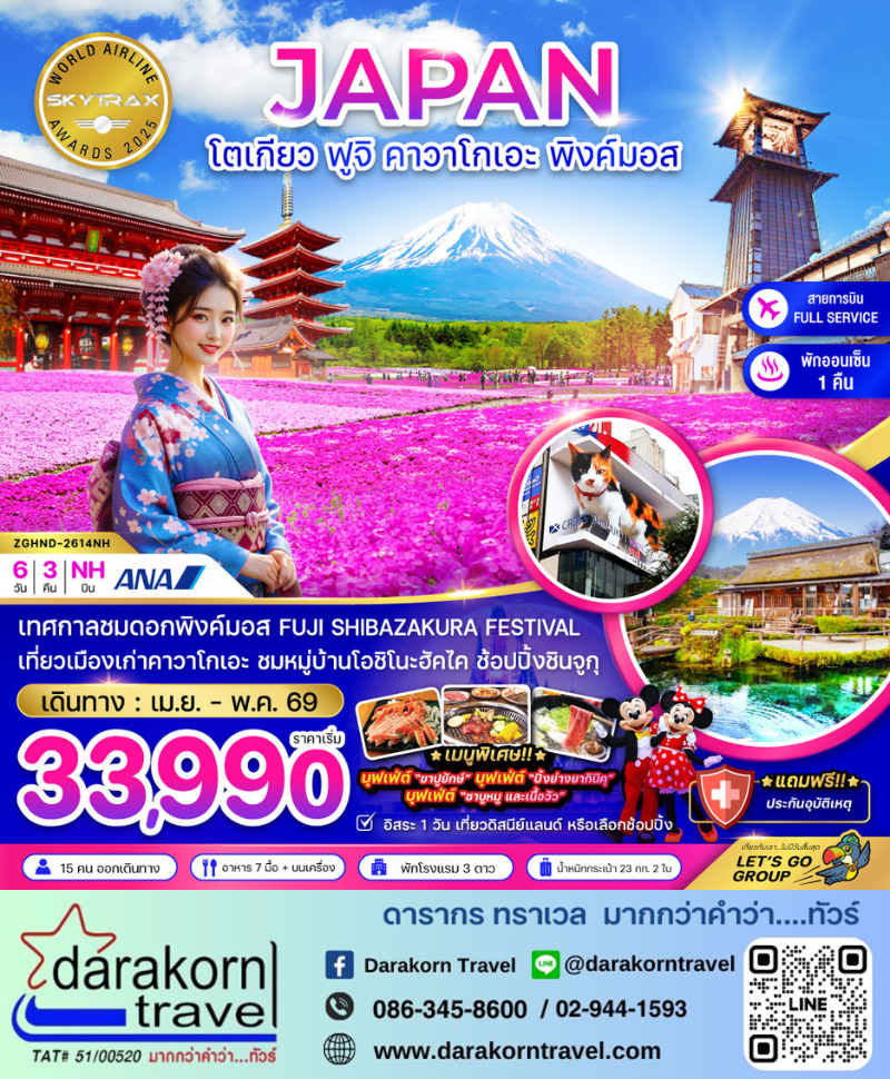 ทัวร์ญี่ปุ่น - โตเกียว ฟูจิ คาวาโกเอะ พิงค์มอส 6วัน4คืน(NH)เดือนเมษายน - พฤษภาคม 2569