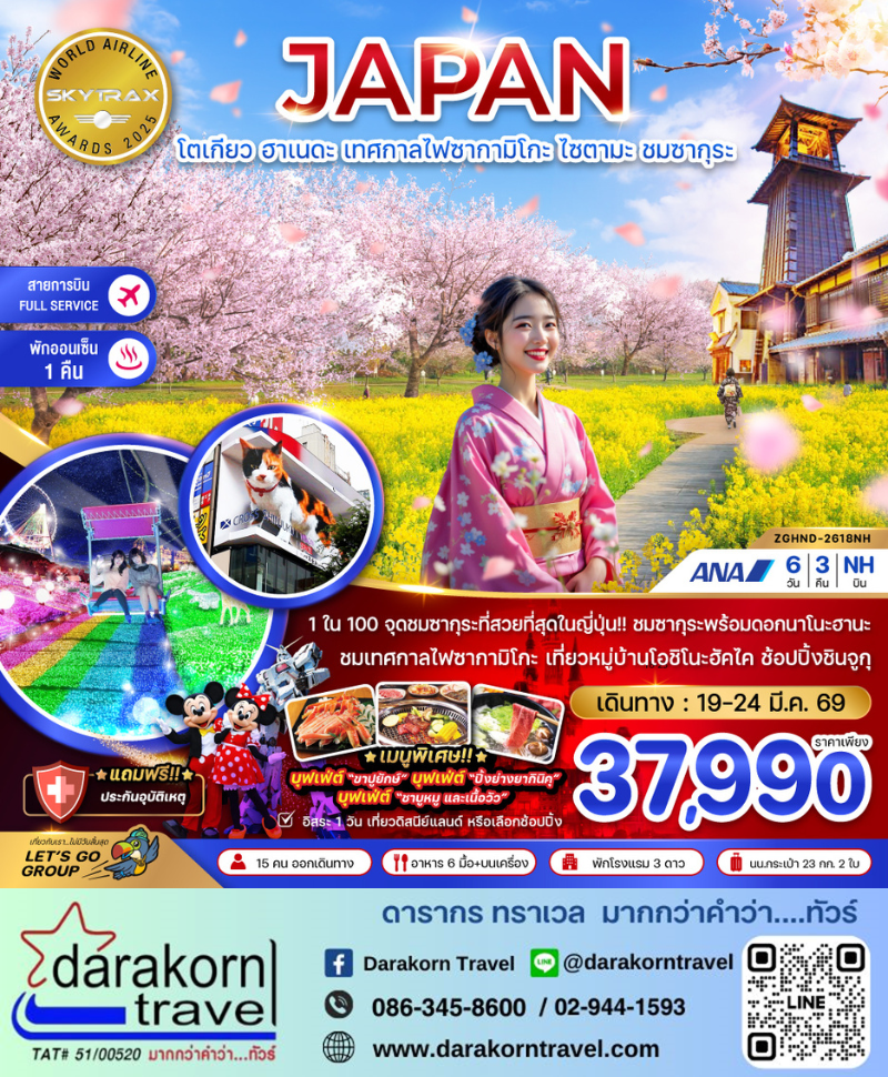 ทัวร์ญี่ปุ่น - โตเกียว ฮาเนดะ เทศกาลไฟซากามิโกะ ไซตามะ ชมซากุระ 6วัน3คืน(NH)เดือนมีนาคม 2569