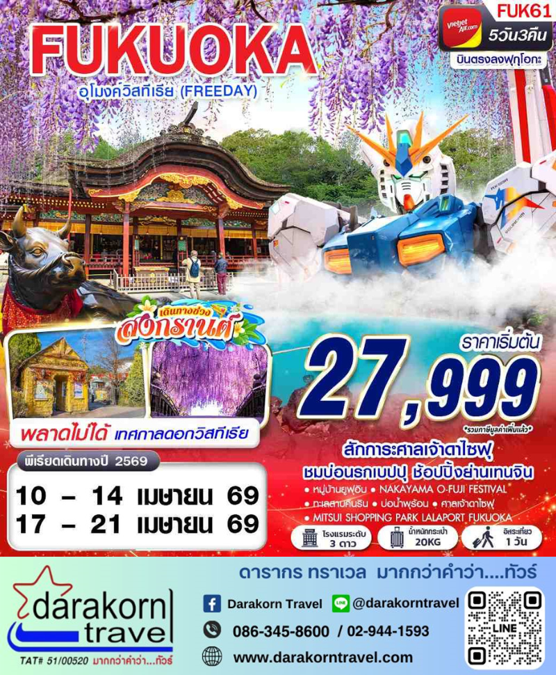 | DAY5 | ท่าอากาศยานฟุกุโอกะ ประเทศญี่ปุ่น – ท่าอากาศยานนานาชาติสุวรรณภูมิ ประเทศไทย |