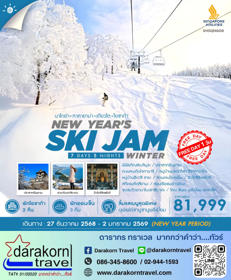 ทัวร์ญี่ปุ่น - NEW YEAR WINTER SKI JAM 7วัน5คืน(SQ)เดือนธันวาคม 2568