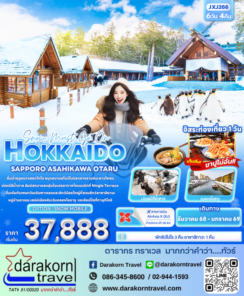 DAY4 | พิพิธภัณฑ์ Otokoyama Sake Brewery Museum – สวนสัตว์อาซาฮิยาม่า(รวมค่าเข้าชม) – หมู่บ้านราเมนอาซาฮิคาว่า – โอตารุ – เครื่องแก้วโอตารุ – พิพิธภัณฑ์กล่องดนตรี – คลองสายวัฒนธรรมโอตารุ – เมืองซัปโปโร – ย่านทานุกิโคจิ |