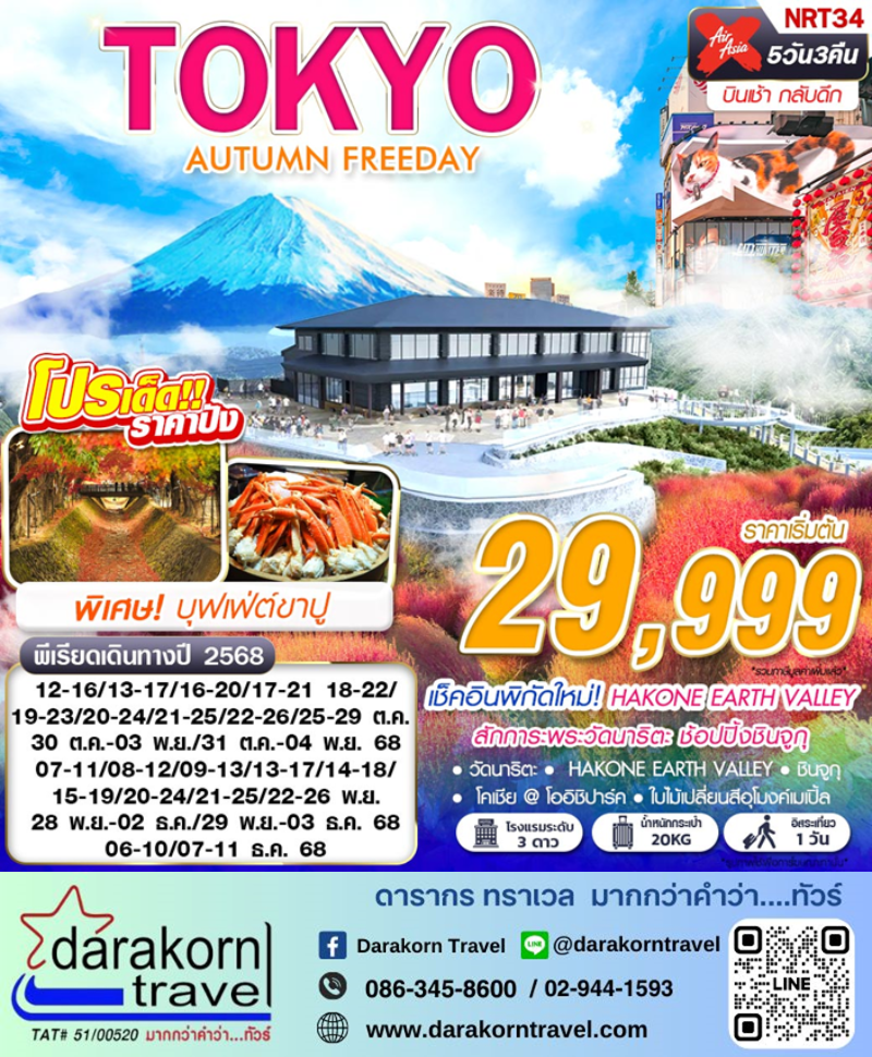 ทัวร์ญี่ปุ่น - TOKYO AUTUMN FREEDAY 5วัน3คืน(XJ)เดือนตุลาคม - ธันวาคม 2568