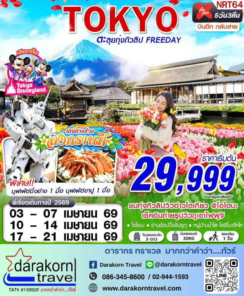 ทัวร์ญี่ปุ่น - TULIP ตะลุยทุ่งทิวลิป (FREEDAY) 5วัน3คืน(XJ)เดือนเมษายน 2569